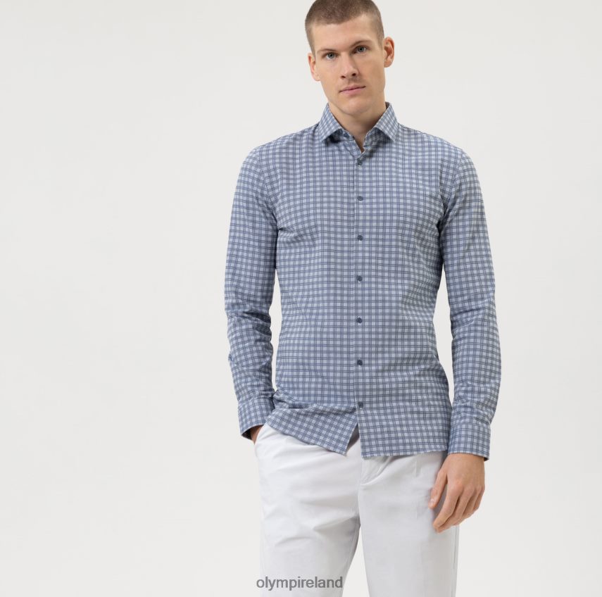 Fine woven stripes made of functional high-tech yarns. The special feature of this OLYMP No. Six shirt is the innovative, highly elastic and at the same time elegant fabric with breathable and moisture-regulating CLIMATE CONTROL. The classic design in marine fits perfectly into a serious business environment. In a close-fitting super slim fit, accentuated by a Modern Kent collar.