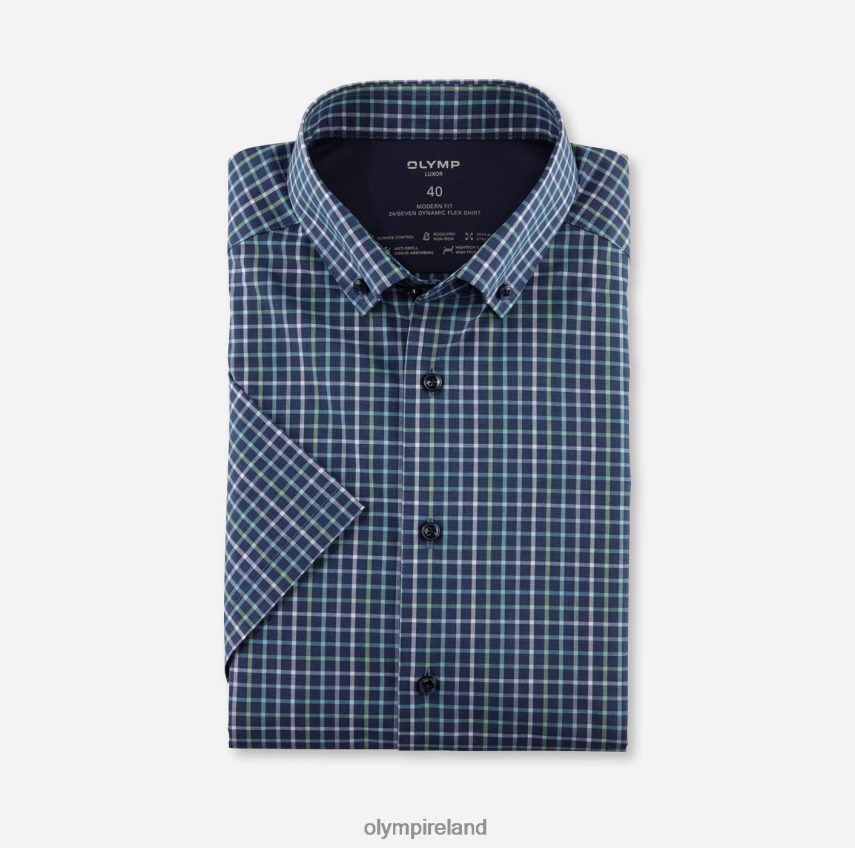 Creative checks are a contemporary statement in today's business world. The innovative climate control fabric made of cotton, polyester and elastane fibres marks the evolution of shirt design with an inimitable fit, casual feel and skin-friendly comfort. This OLYMP Luxor 24/Seven Dynamic-Flex shirt in high-contrast light green accentuated on dark blue scores with our tried-and-tested OLYMP features and adds two more: the new generation of shirts is also temperature- and moisture-regulating. It ensures well-considered strategies and cool moves, even in the summer heat. Button-down collar, ideal for wearing without a tie and with an open shirt button.