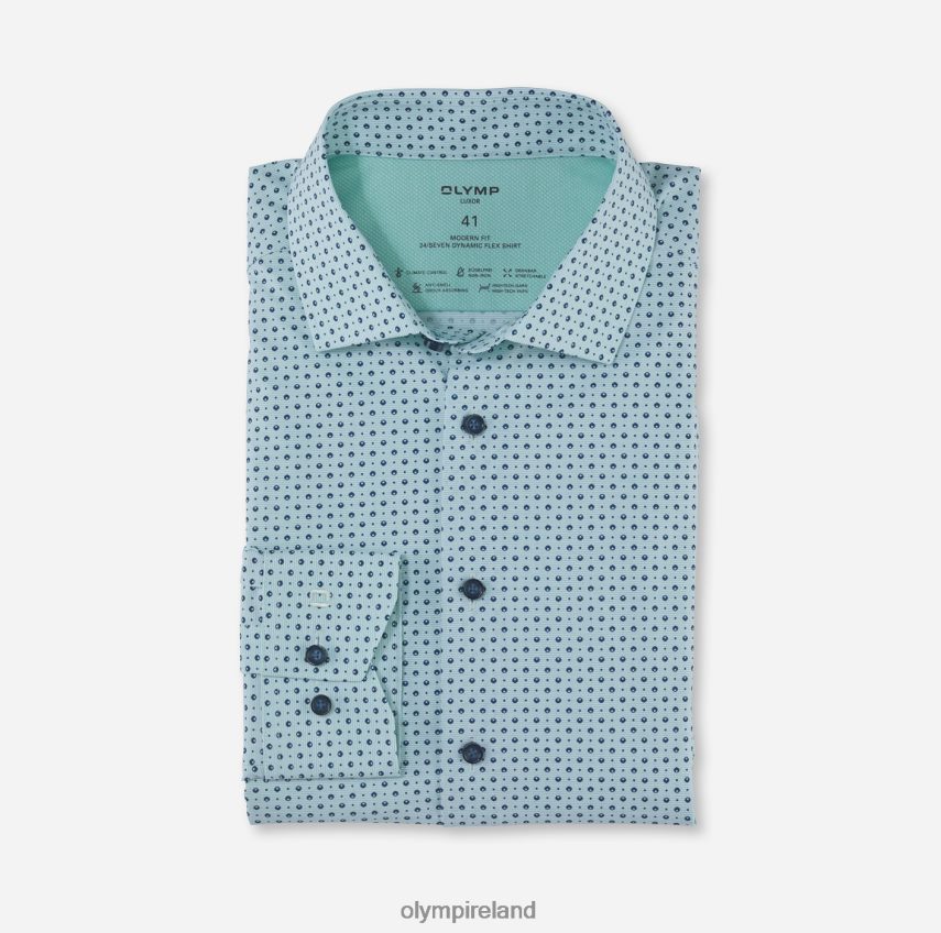 It's a match: with this OLYMP Luxor 24/Seven Climate Control shirt, which is cool in the truest sense of the word, sporty businessmen can welcome the start of summer at the office with likeable performance. The innovative fabric made of cotton, polyester and elastane fibres offers not only our proven breathable, dynamic and easy-care features but also skin-friendly moisture- and temperature-regulation, even under the most demanding conditions. A befitting business look and softly woven T-shirt feel in one. The OLYMP Luxor Climate Control shirt with sophisticated Global Kent collar - state of the art masculine business fashion. Refreshing light green.