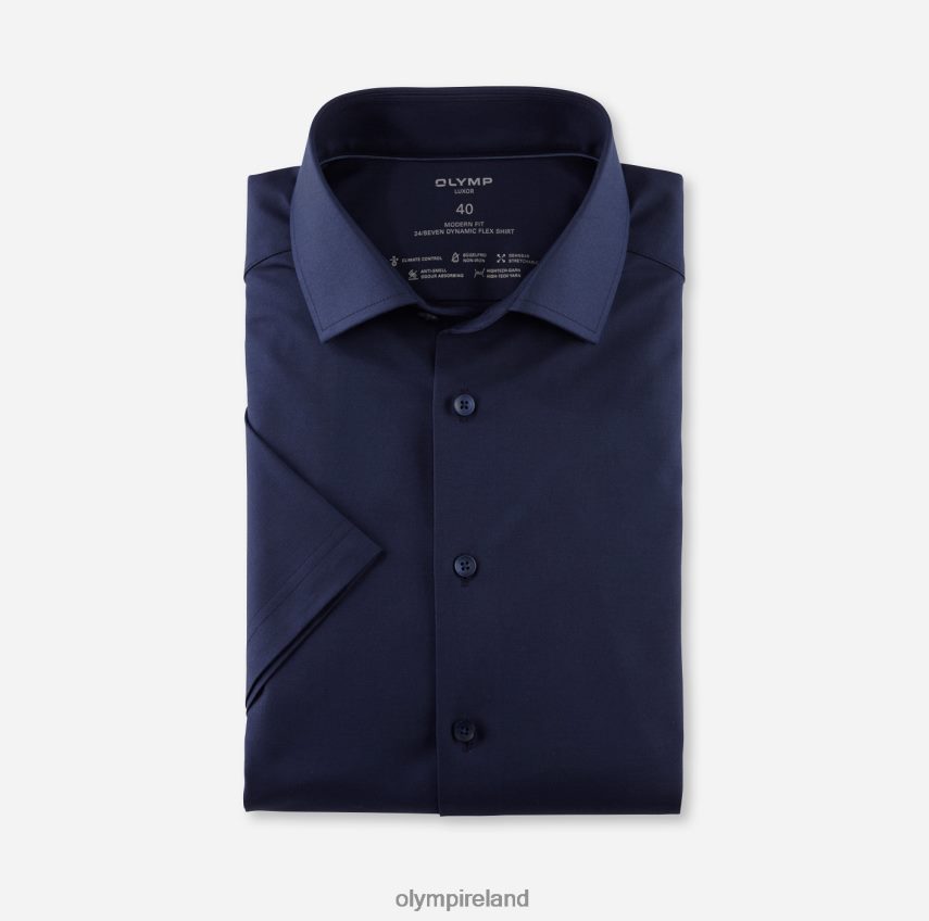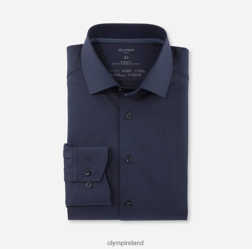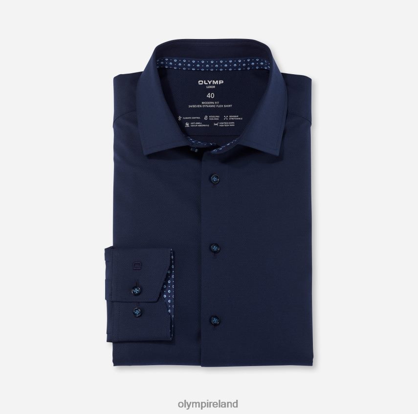 OLYMP Luxor with CLIMATE CONTROL - the high-tech yarn made of cotton, polyester and elastane impresses with its breathable, stretchy, easy-care and easy-iron features, as well as its moisture and temperature-regulating properties. The fabric features a matte sheen and is finely textured. Finished off with a cosmopolitan Global Kent collar, which perfectly matches with the slim-fitting shape. Stately marine, contrasting inner trim, no breast pocket.