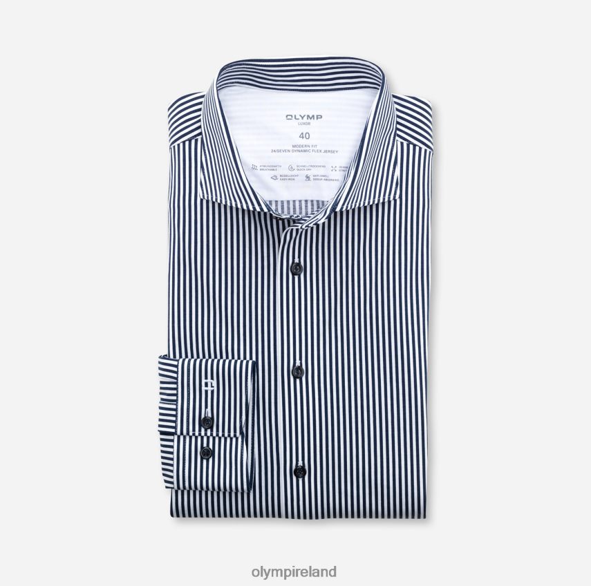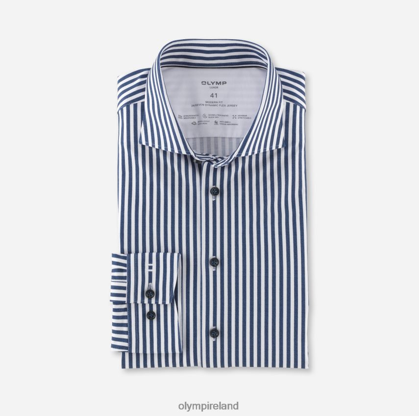 Chic and subtle minimal designs produce a discreetly convincing effect, while the attractive figure-accentuating silhouette immediately catches the eye. The OLYMP Luxor 24/Seven modern fit line in stretchy dynamic flex jersey impresses with its breathability and odour resistance, as well as its easy-iron and quick-drying properties. The woven fibre blend of cotton and elastane keeps its shape and feels pleasant on the skin even under the most demanding conditions. Featuring classic Kent.