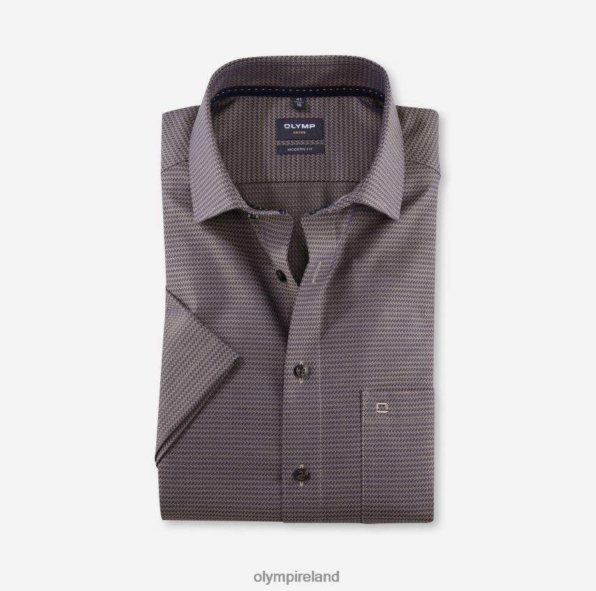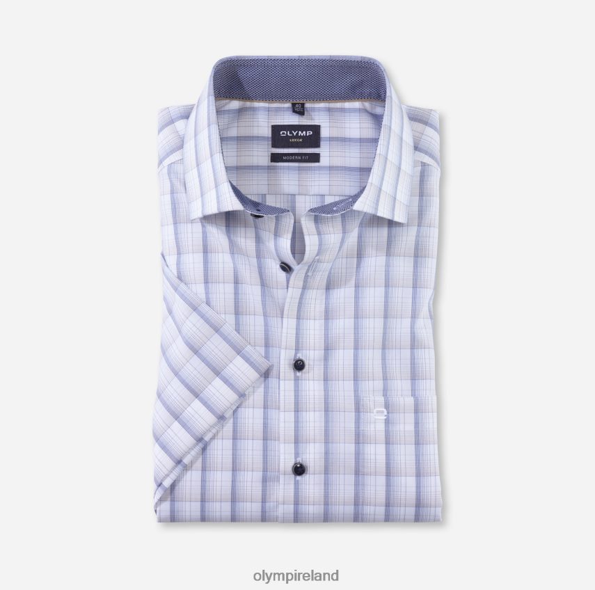 Is a holiday by the sea already tempting you after the winter The sophisticated nude, marine and white colour scheme as well as the creative pattern with pixel-sharp colour gradients impress with their visual lightness and the outstanding smoothness of the fine, cool cotton yarns. The slightly tailored, slim-fitting cut and cosmopolitan Global Kent collar underline the more casual business style of the younger generation. Serious and individual, this OLYMP Luxor modern fit shirt sets the benchmark for a stylish look. Summery, airy with short sleeves and no breast pocket.